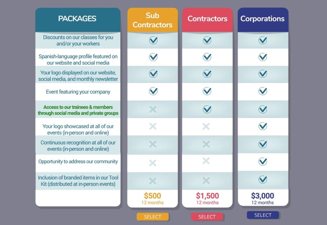Nuestra misión de empoderar a las mujeres —especialmente a las mujeres latinas— en la industria de la construcción sólo es posible gracias a alianzas sólidas con empresas, organizaciones y líderes comunitarios que comparten nuestra visión.